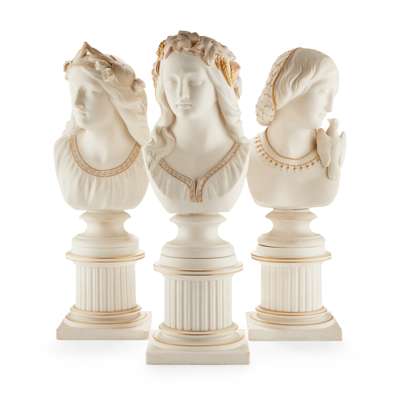 THREE COPELAND PARIANWARE PARCEL GILT BUSTS