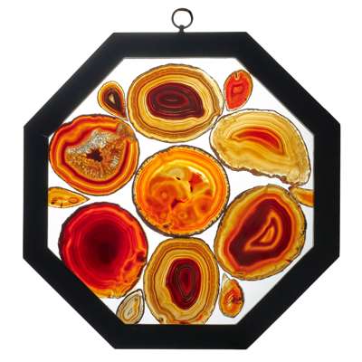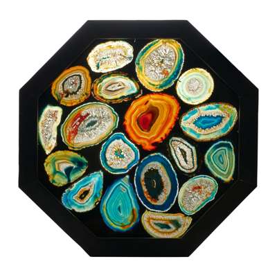 TWO FRAMED CROSS-SECTION AGATE GEODE WINDOW PANELS