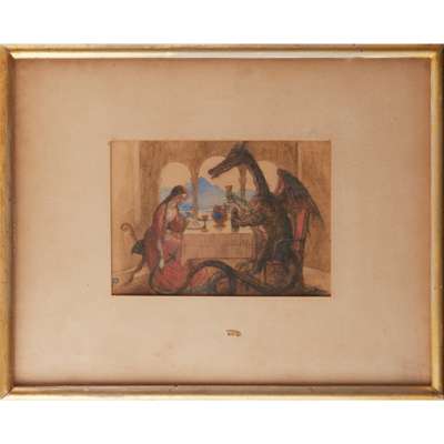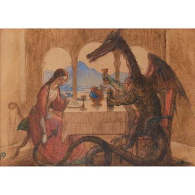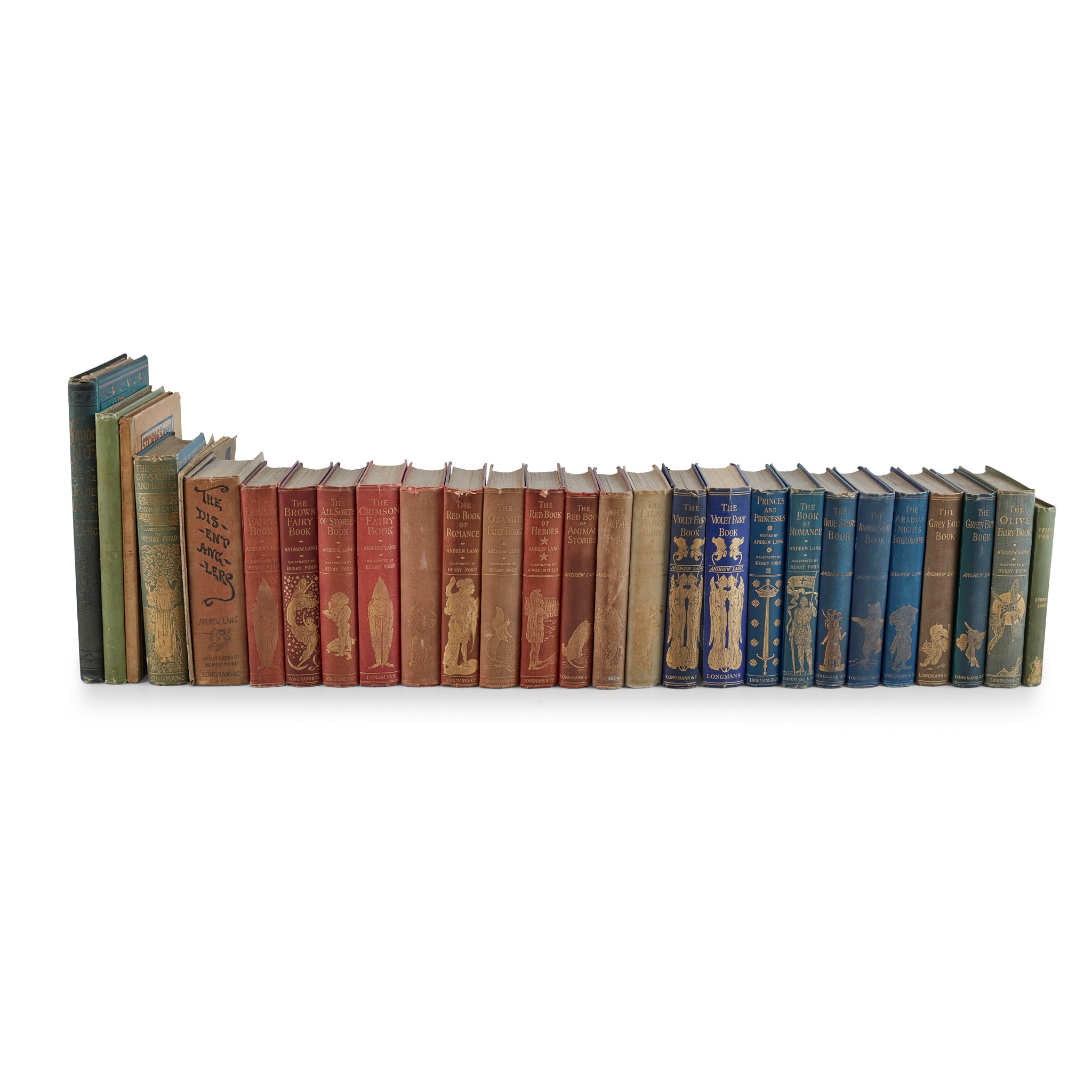 26 cloth bound books, including: The Green Fairy Book, 1892; The Pink Fairy Book, 1897; The Grey Fairy Book, 1900; The Crimson Fairy Book, 1903; The Brown Fairy Book, 1904; The Olive Fairy Book, 1907; The Lilac Fairy Book, 1910; The All Stories Book, 1911; The Red Book of Animal Stories, 1899; The Gold of Fairnilee, [n.d.]; Deulin, John - Andrew Lang, translator Johnny Nut and the Golden Goose, 1887; and a collection of others, full list available; together RICHARD DOYLE (BRITISH 1824-1833), 'Beauty & The Beast', watercolour, signed monogram, 13cm x 19cm; sold not subject to return