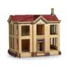 modelled as a two-storey villa painted yellow with blue and green exterior trim mouldings and a red roof, the interior with central halls and eight rooms