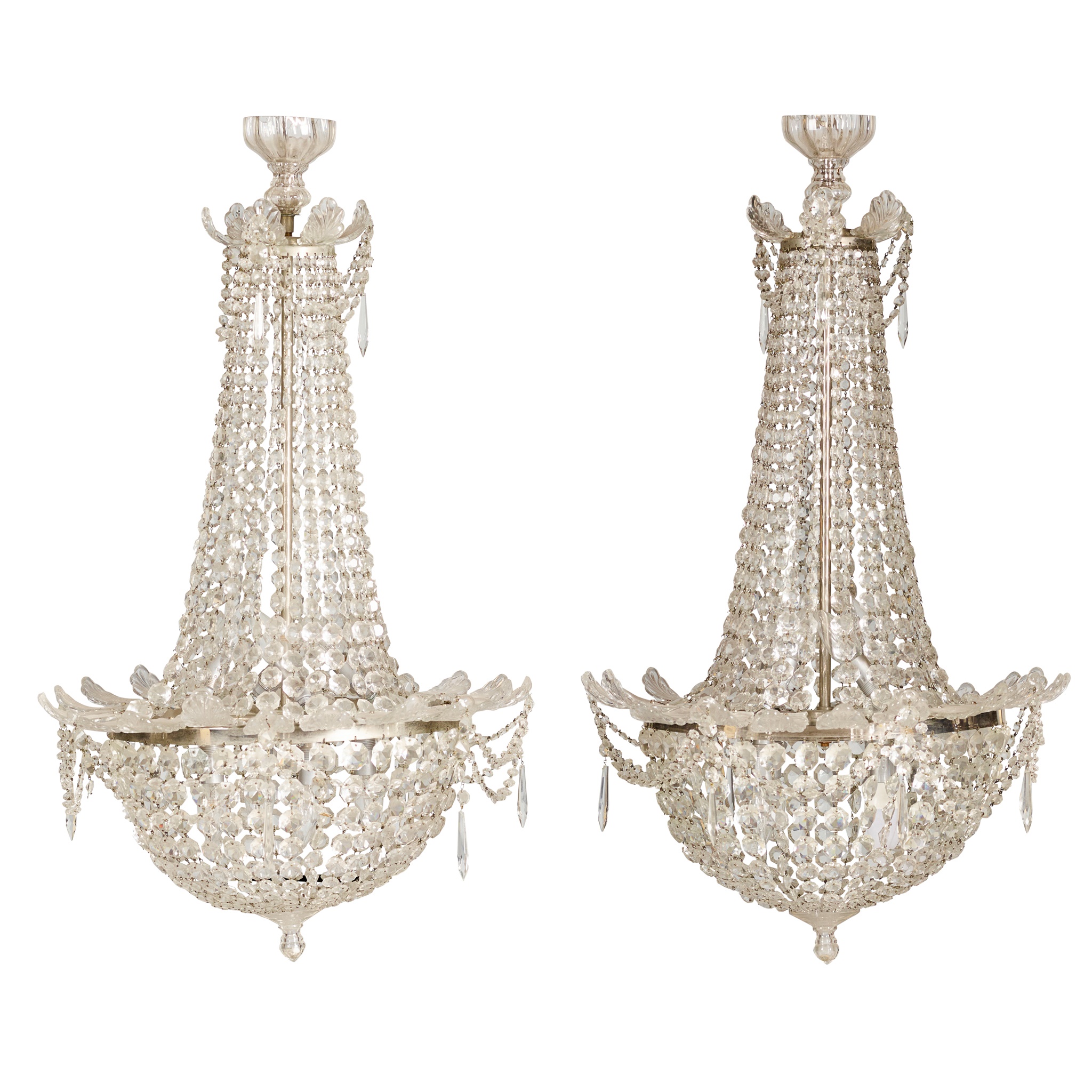PAIR OF CUT GLASS BASKET CHANDELIERS