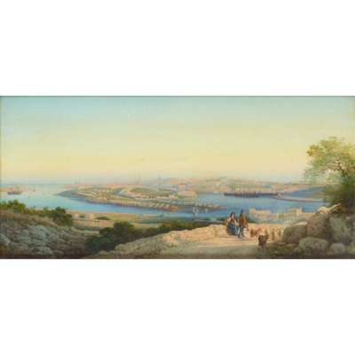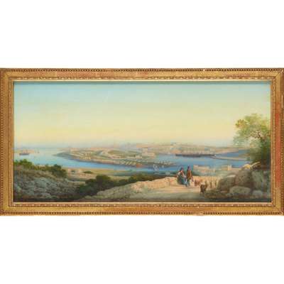Girolamo Gianni completed these magnificent panoramas to commemorate the arrival of the garrisons in Malta. Scenes such as these demonstrated the army’s effective operation across exotic locations, and Gianni’s scenes skilfully convey the garrison’s preparedness and anticipation for its next manoeuvre.