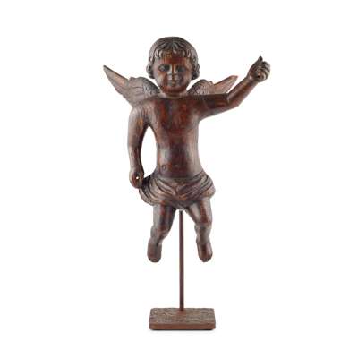 SPANISH CARVED OAK FIGURE OF A CHERUB