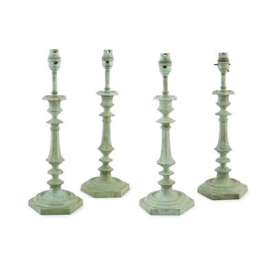 FOUR VERDIGRIS PATINATED BRONZE TABLE LAMPS