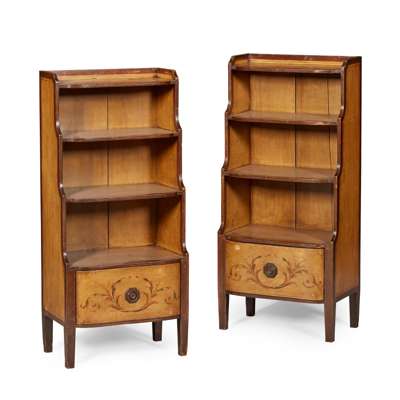 PAIR OF NORTH EUROPEAN PAINTED PINE WATERFALL BOOKCASES