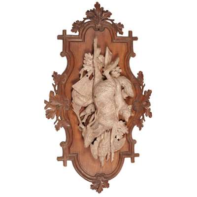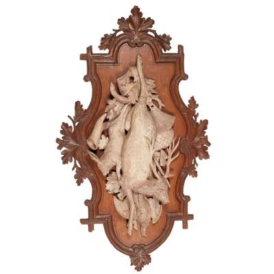 PAIR OF BLACK FOREST CARVED HUNTING TROPHIES