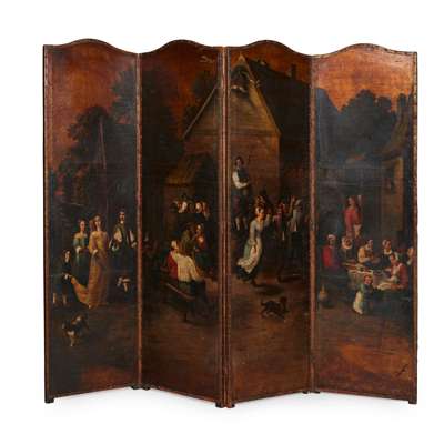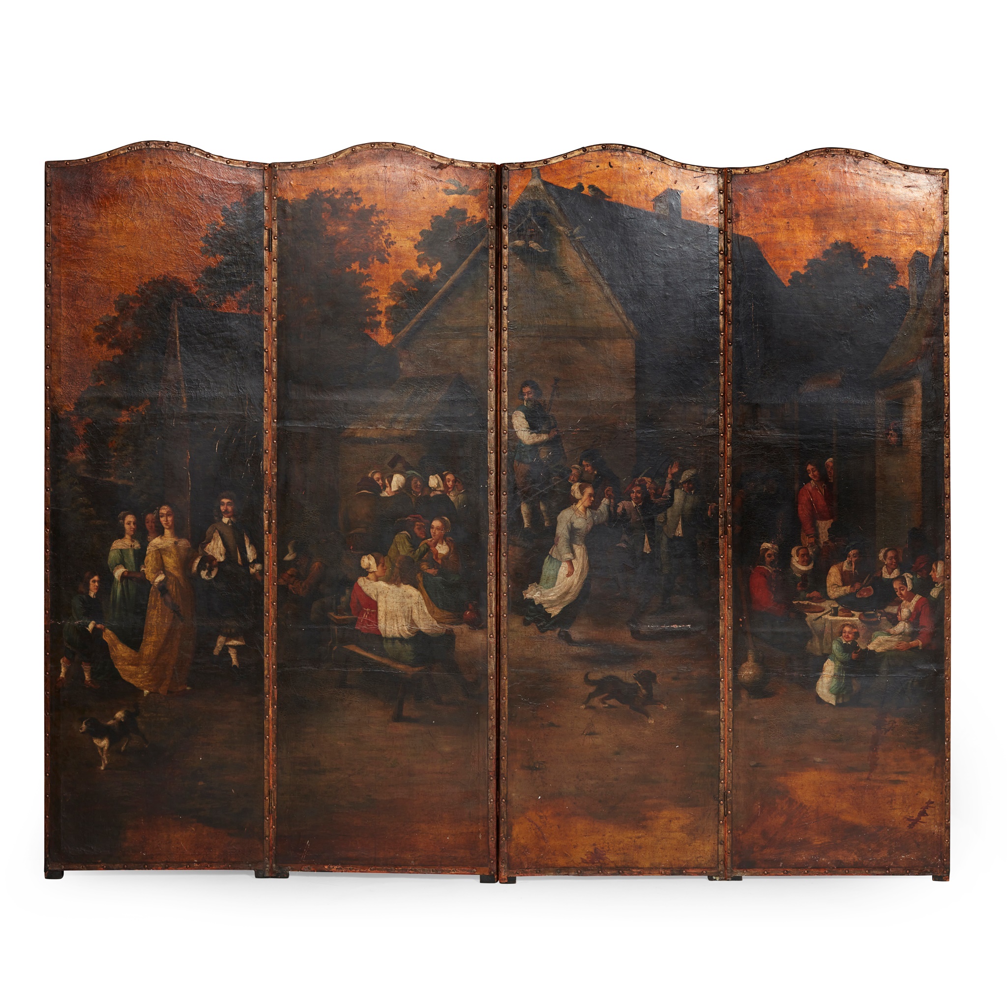 DUTCH PAINTED LEATHER FOUR-FOLD SCREEN