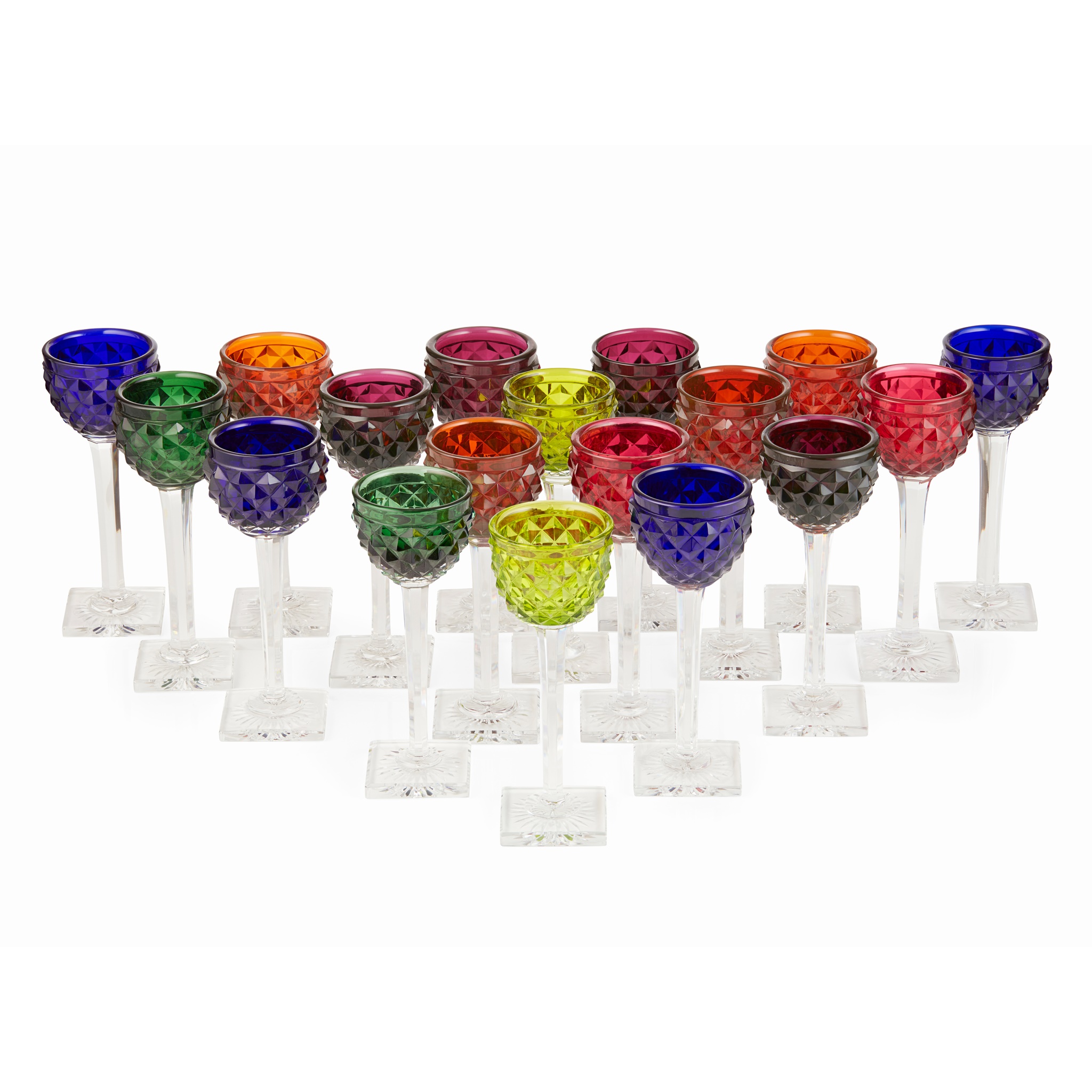 MATCHED SET OF EIGHTEEN BACCARAT COLOURED WINE GLASSES
