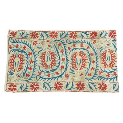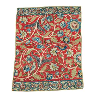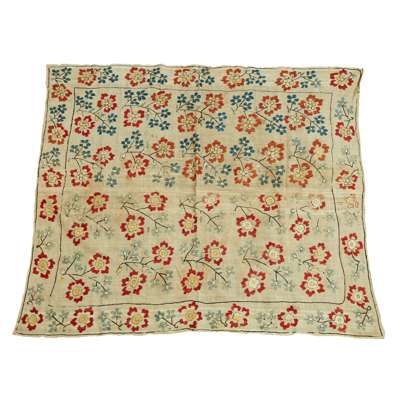 comprising four examples, largest 108cm x 86cm; together with a SUSANI PANEL, 254cm x 30cm; and TWO EUROPEAN EMBROIDERED PANELS, one a remnant