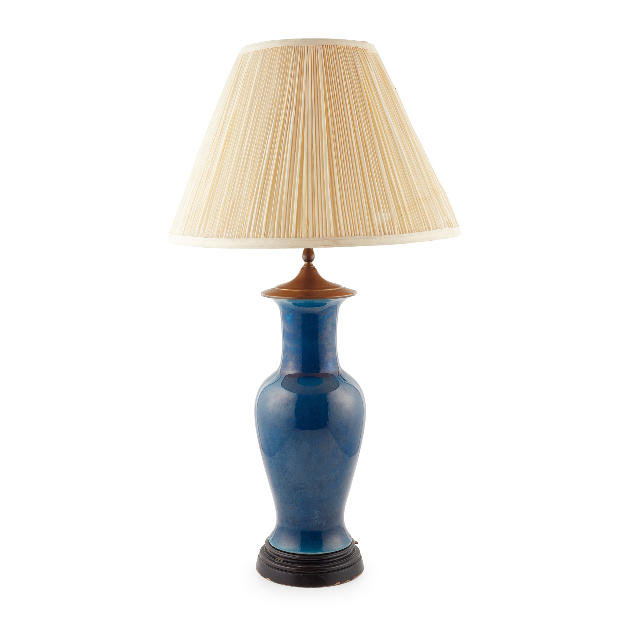 of baluster form, converted to a lamp and wired for electricity, with a metal mount to neck and ebonised base