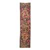 the dark indigo field with allover scroll and floral pattern, within narrow brown border