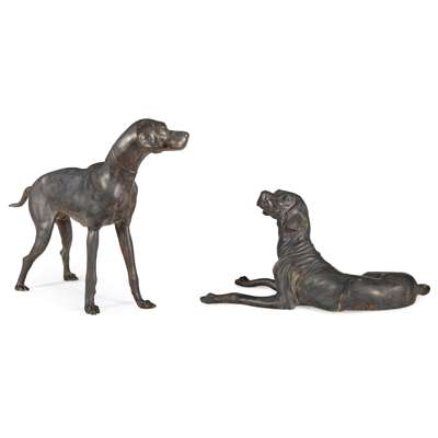 TWO LIFE-SIZE BRONZE FIGURES OF HOUNDS