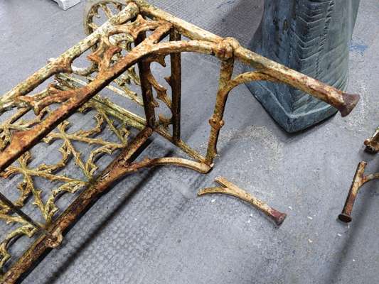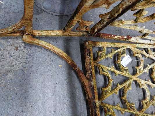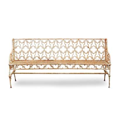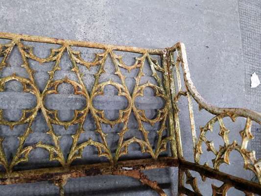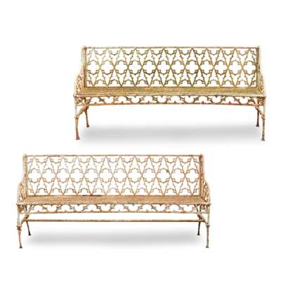 PAIR OF FRENCH GOTHIC REVIVAL CAST-IRON GARDEN BENCHES, AFTER A DESIGN BY THE VAL D'OSNE FOUNDRY