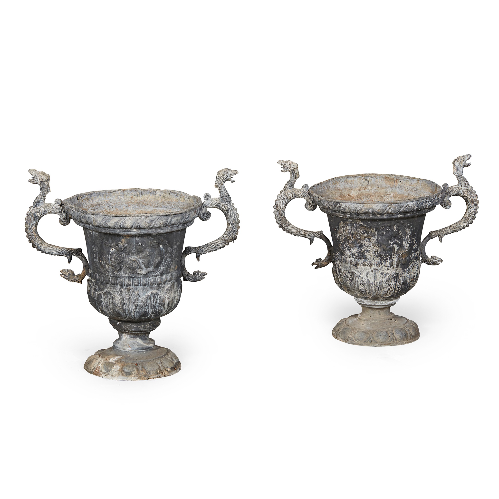 PAIR OF BAROQUE STYLE CAST LEAD URNS