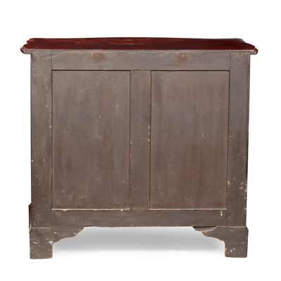 LATE GEORGE III MAHOGANY LINE INLAID SERPENTINE CHEST OF DRAWERS