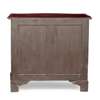 the top with a moulded edge over four long graduated drawers outlined with stringing and flanked by angles with further line inlay, on block bracket feet