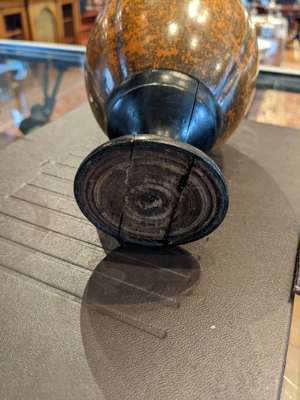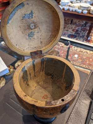 with an ebonised acorn finial and turned foot, opening to a void interior