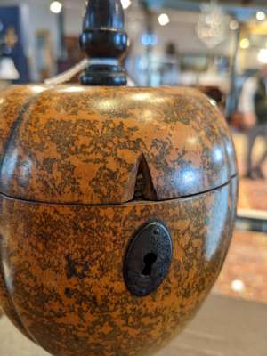 GEORGE III STAINED FRUITWOOD MELON-FORM TEA CADDY