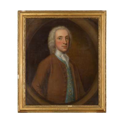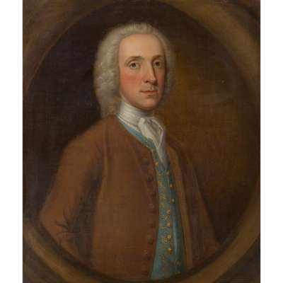 HALF LENGTH PORTRAIT OF A GENTLEMAN IN A BROWN FROCK COAT