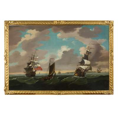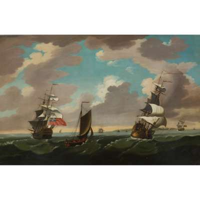 SHIPS OF THE FLEET AND SMALLER CRAFT OFF AN ISLAND