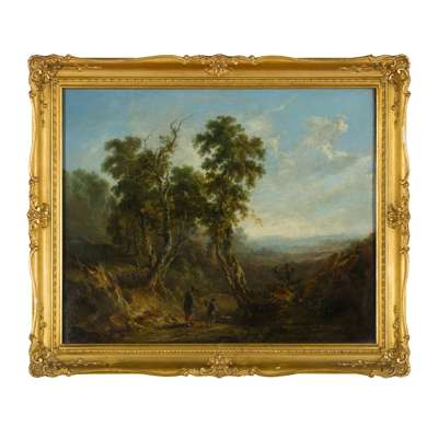 FIGURES ON A WOODED COUNTRY ROAD