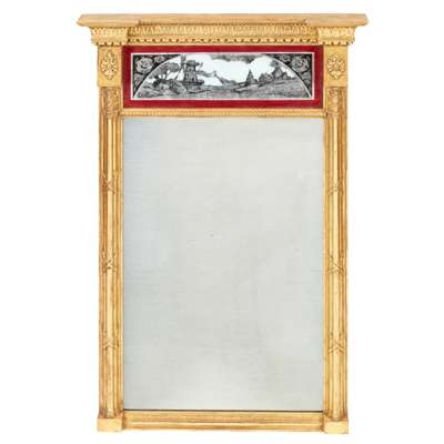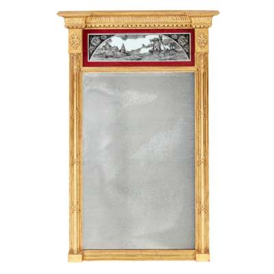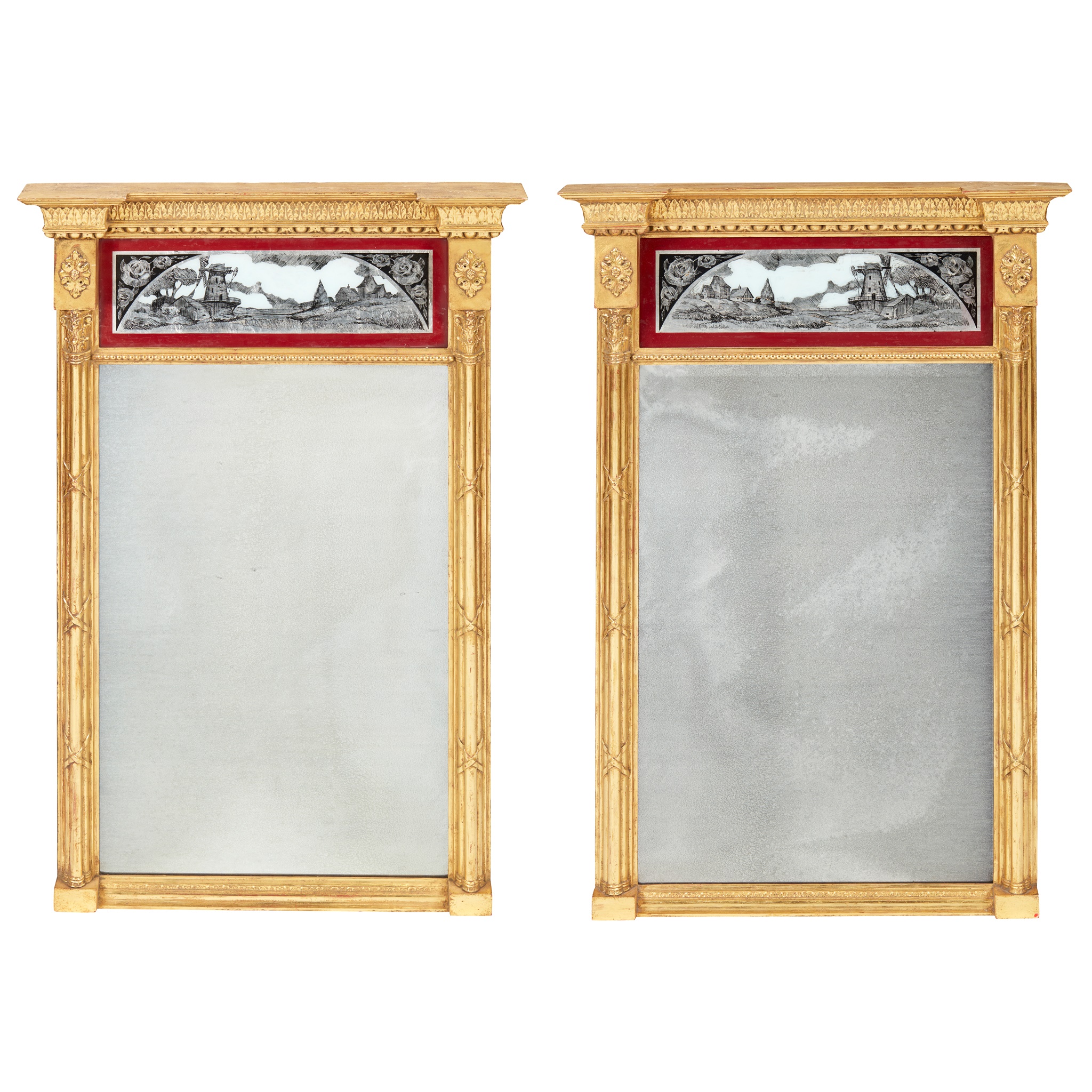 PAIR OF REGENCY STYLE GILTWOOD AND EGLOMISE PIER MIRRORS