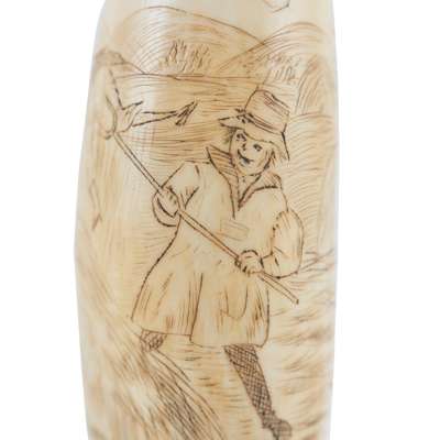 TWO SCRIMSHAW WHALE'S TEETH Y