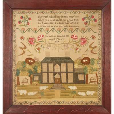 EARLY VICTORIAN NEEDLEWORK SAMPLER, BY SARAH JANE REDDISH