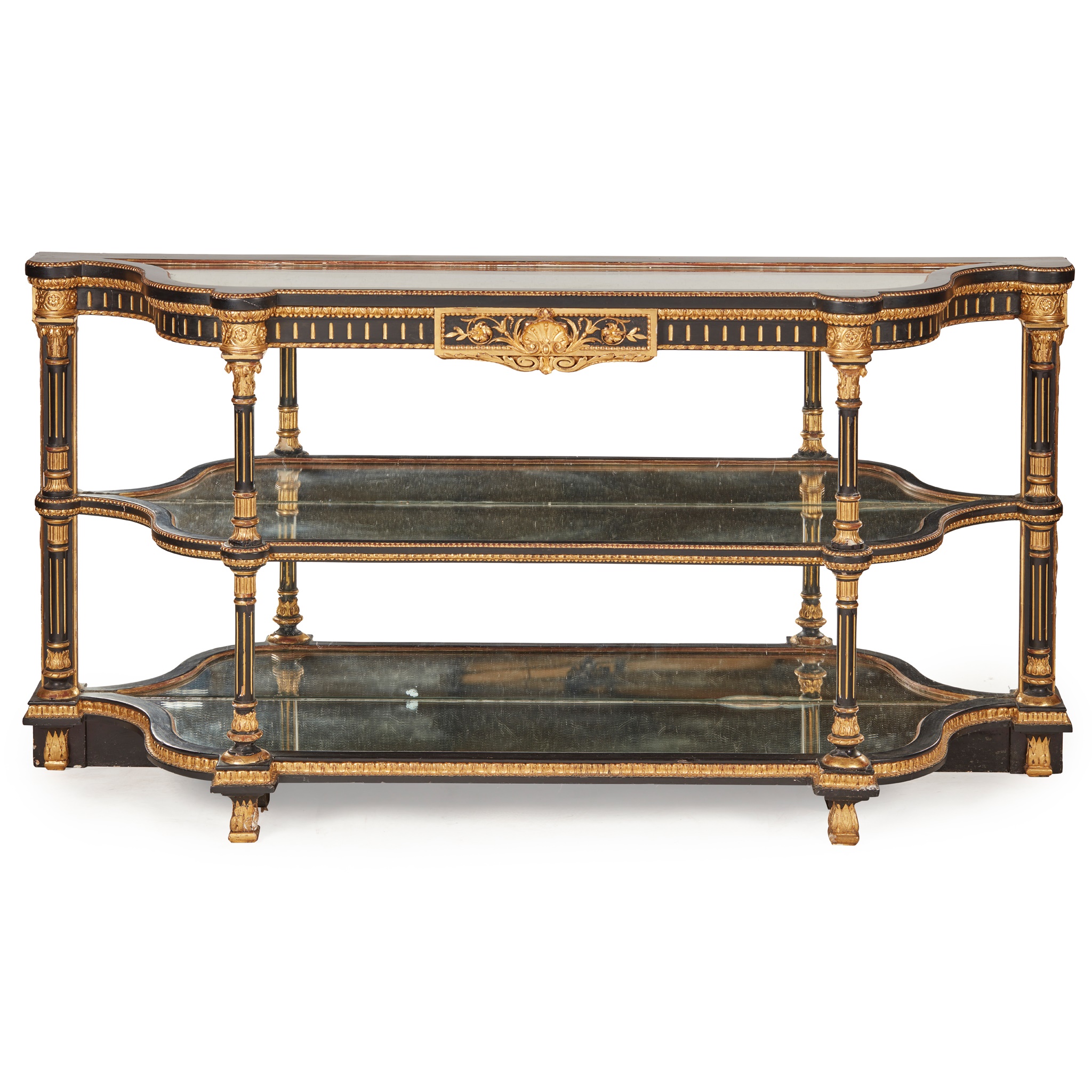 EARLY VICTORIAN EBONISED AND PARCEL GILT MIRRORED CREDENZA, CHARLES NOSOTTI, LONDON