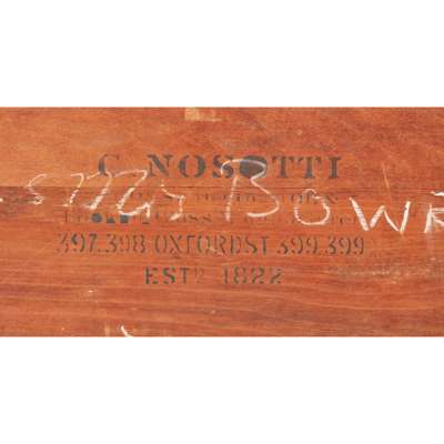 Note: Charles Andrea Nosotti is listed as a carver, gilder, upholsterer and cabinetmaker at 2 Dean Street, Soho, from 1835-1840, although he appears to have set up a 'looking glass manufactory' in 1831. Almost certainly born in Milan, his high standard of workmanship led him to exhibit a giltwood cabinet at the 1862 London Exhibition that he had made for the Countess of Waldegrave's drawing room at Strawberry Hill. The cabinet is illustrated in J. Meyer, Great Exhibitions 1851-1900, London, 2006, p.167. Further commissions came from the millionaire industrialist John Allcroft at Stokesay Court, Shropshire. Nosotti advertised furniture in the Art Journal Catalogue of the International Exhibition, 1867, noting that his firm enjoyed the patronage of the Princess of Wales. He later collaborated with the leading Victorian makers Howard and Sons and this piece certainly has the hallmarks of this collaboration.