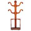 with four scrolling arms with four turned hanging pegs, with a metal lined stick stand base