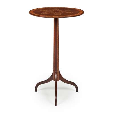 EARLY VICTORIAN ROSEWOOD, MAPLE, AND TUNBRIDGEWARE WINE TABLE Y