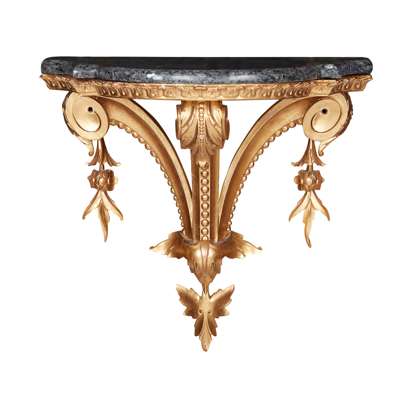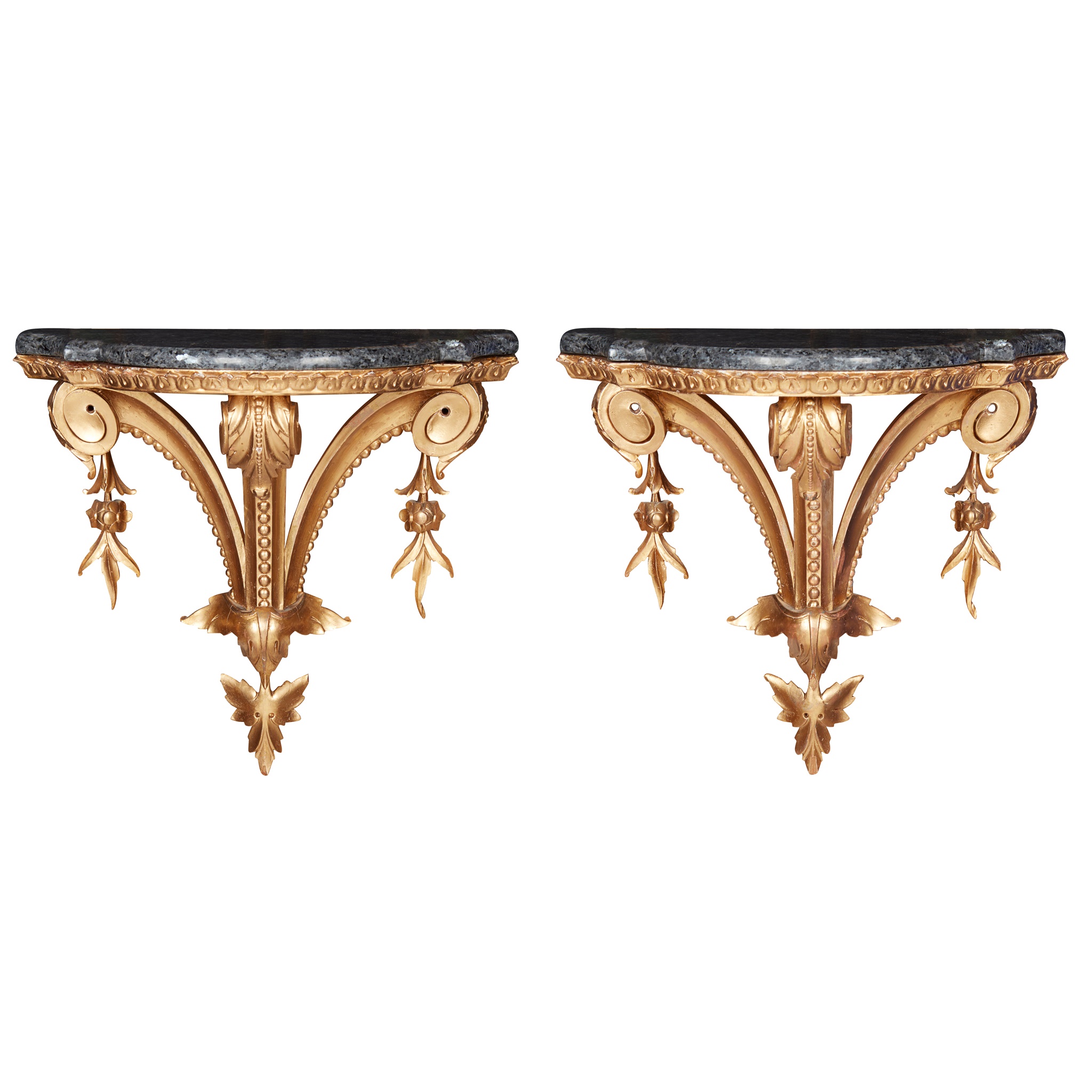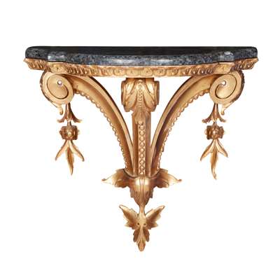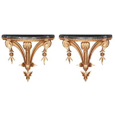 PAIR OF CARVED GILTWOOD AND MARBLE WALL BRACKETS