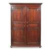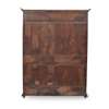 the moulded cornice above a pair of panel doors enclosing shelves, on block feet