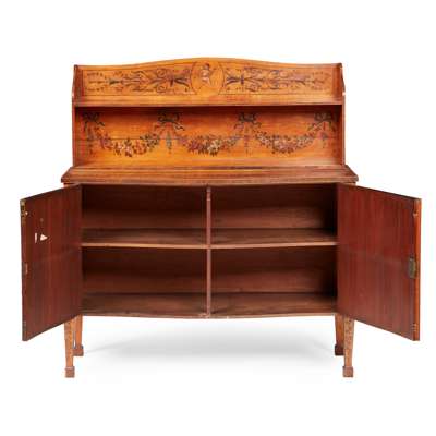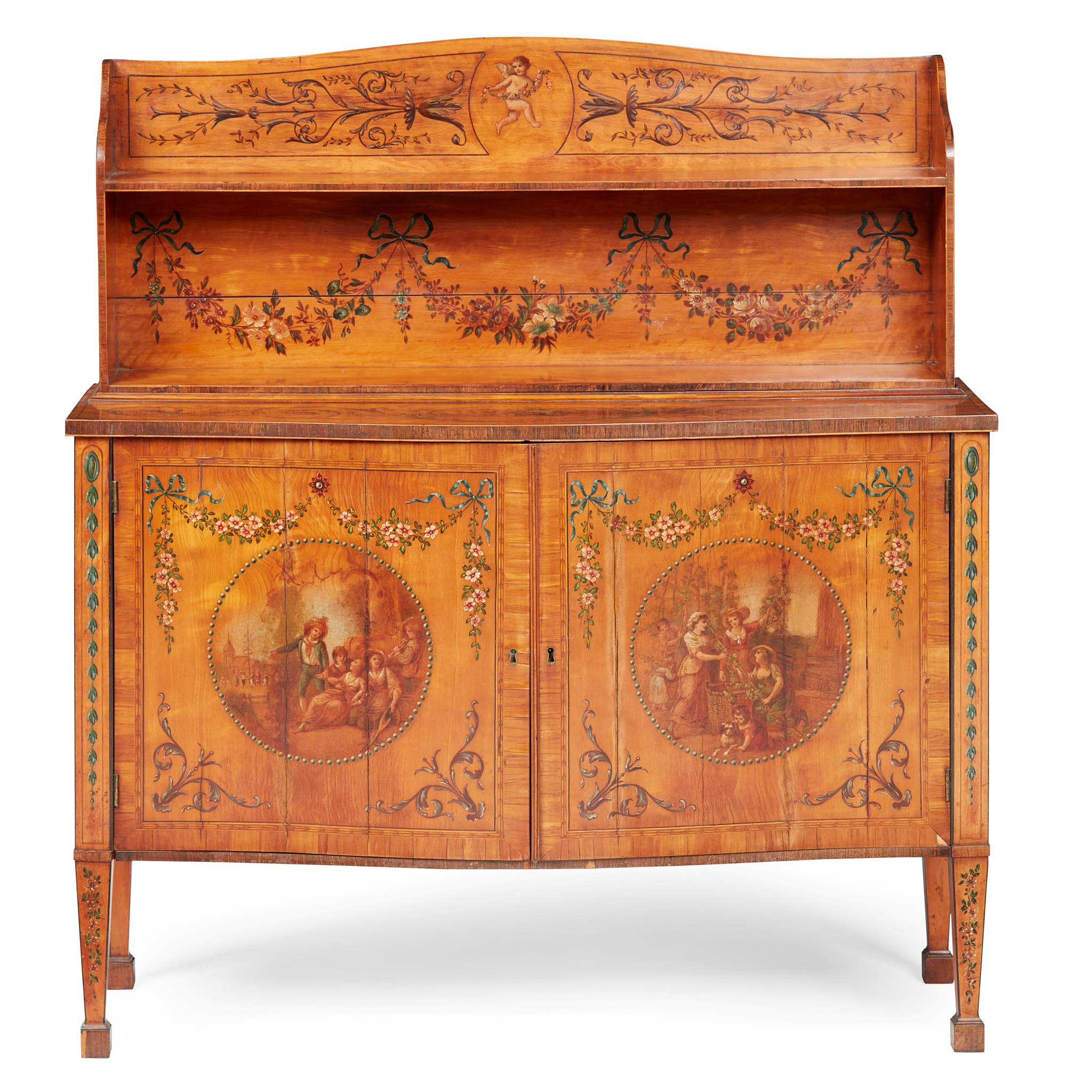 SHERATON REVIVAL PAINTED SATINWOOD CREDENZA