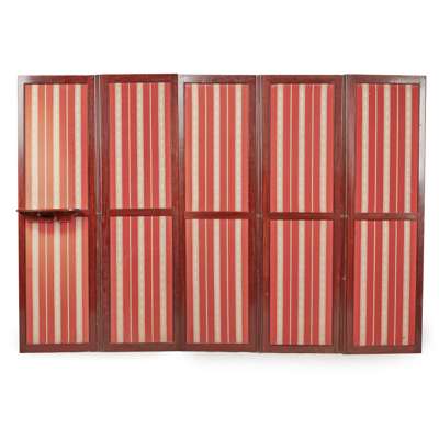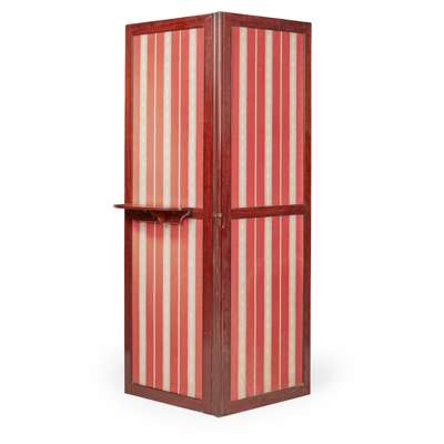 one with three panels, the other with two and a folding shelf, lined with striped fabric