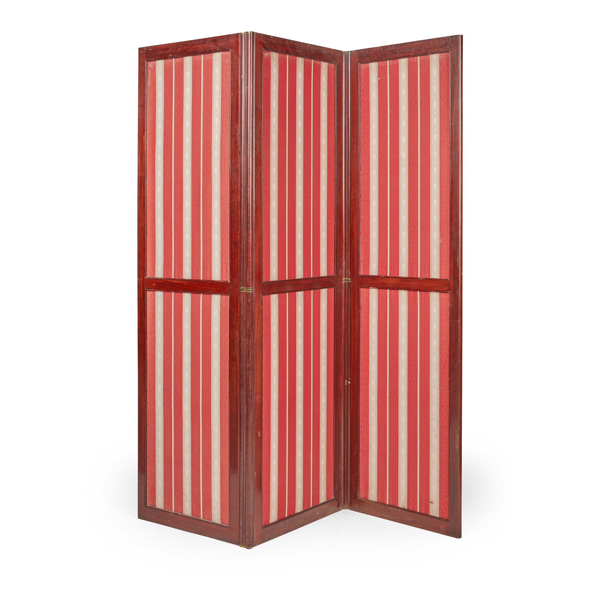 TWO EDWARDIAN MAHOGANY FRAMED FLOOR SCREENS