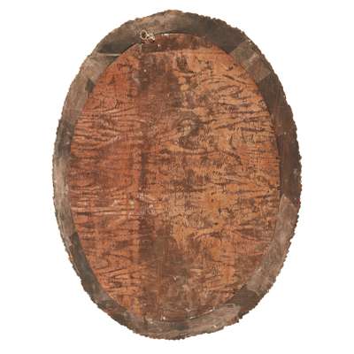 the oval plate in a frame carved with grapes, leaves, and flowers