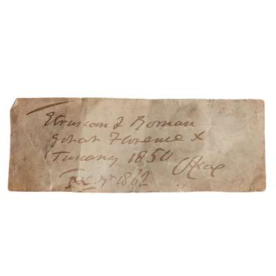 The labels with these items were handwritten by the collector himself, Charles Richard Fox (1796-1873). He was the son of Henry Richard Vassall-Fox, 3rd Baron of Holland, and Lady Elizabeth Webster, herself a fascinating character, well-known as an intellectual.