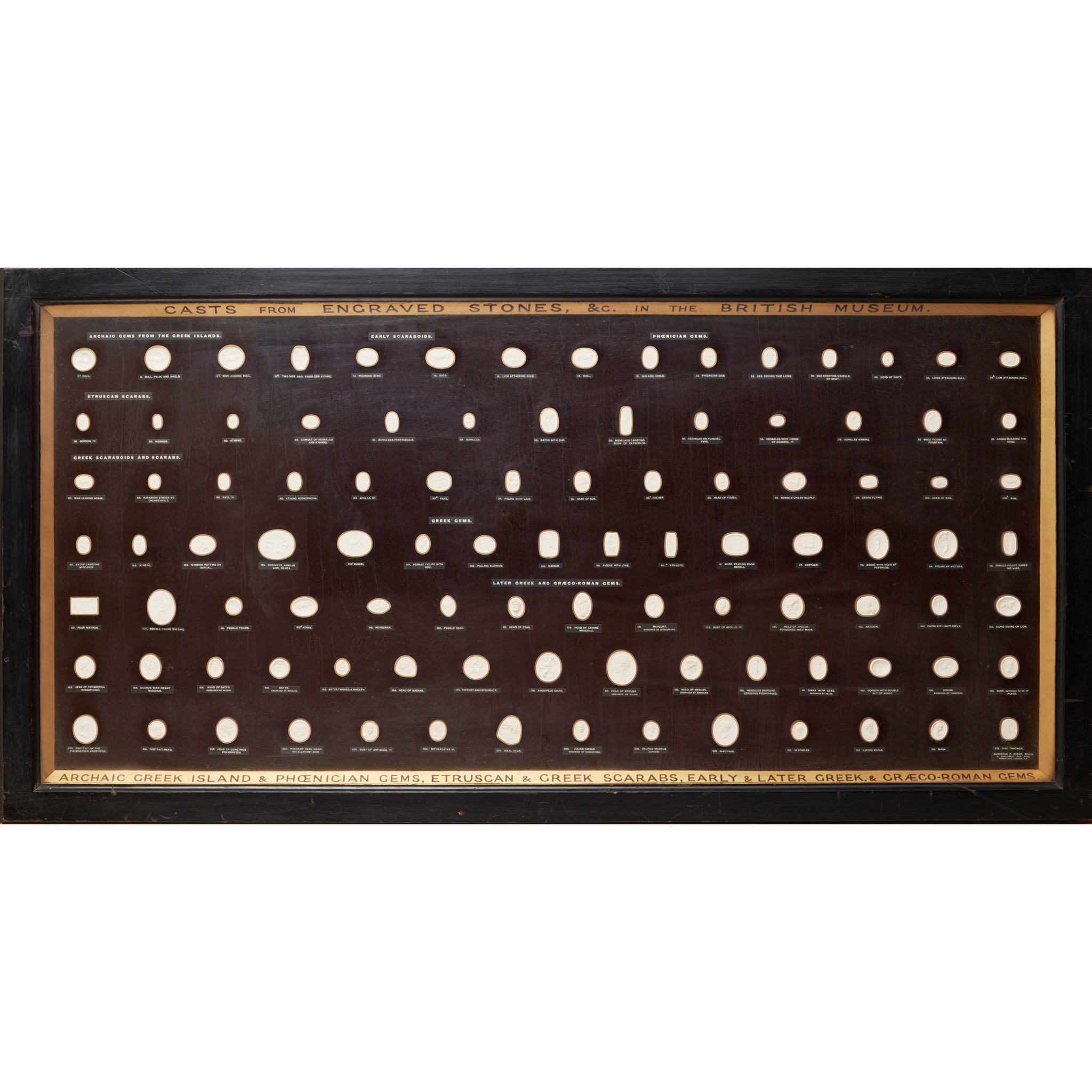 comprising one hundred examples of various size and shape, all labelled, titled CASTS FROM ENGRAVED STONES, &C. IN THE BRITISH MUSEUM/ ARCHAIC GREEK ISLAND & PHOENICIAN GEMS, ETRUSCAN & GREEK SCARABS, EARLY & LATER GREEK & GRAECO-ROMAN GEMS.