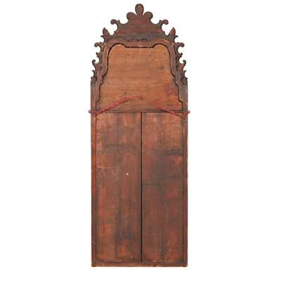 GEORGE II STYLE MAHOGANY, PAINTED, AND PARCEL-GILT MIRROR