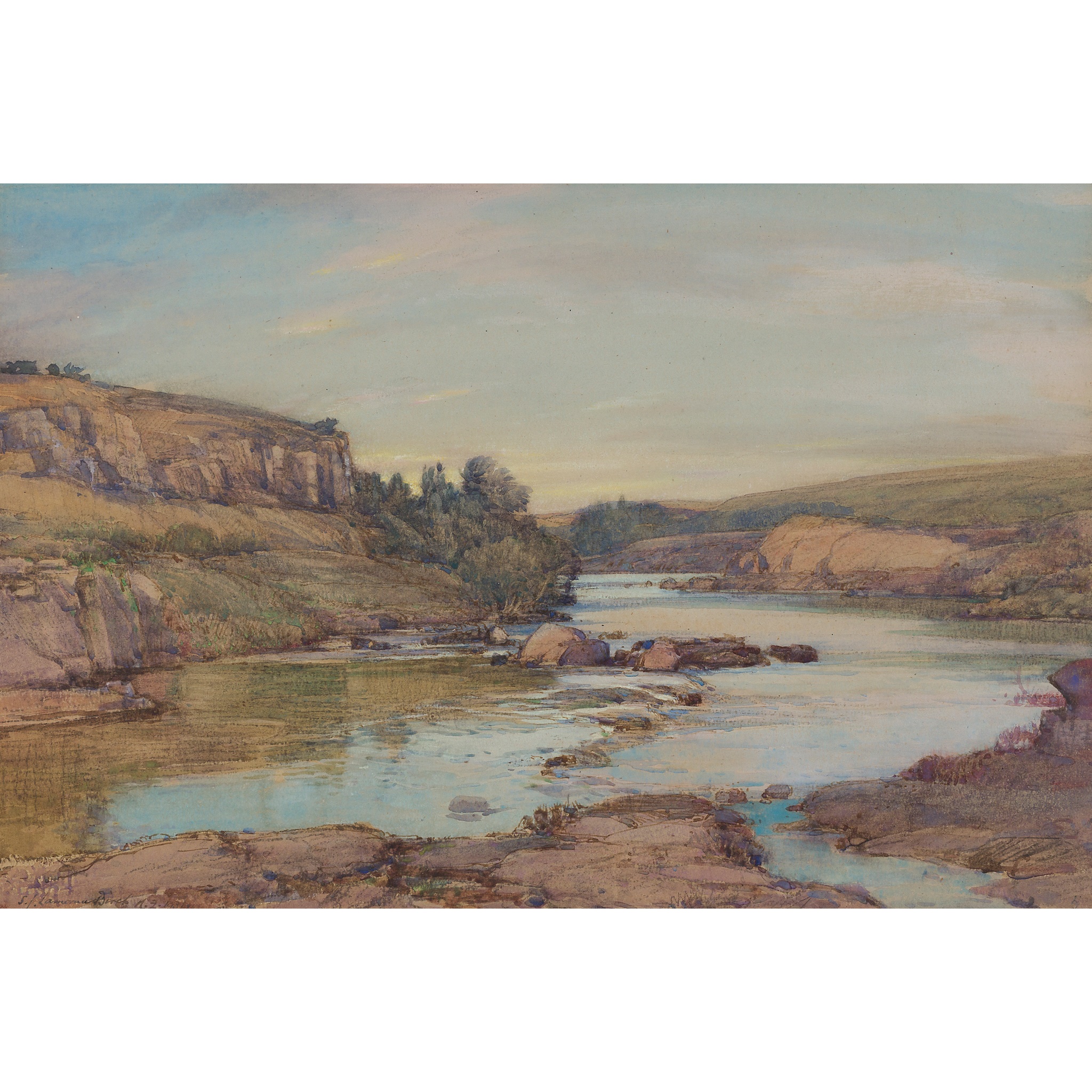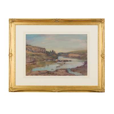 Note: A hand written letter dated 'Dec.12 1944' from the artist to the original purchaser explains where the watercolour was painted....'The Shag is not a very big river but was formerly a famous one for its trout. I fished and painted there quite a lot....'