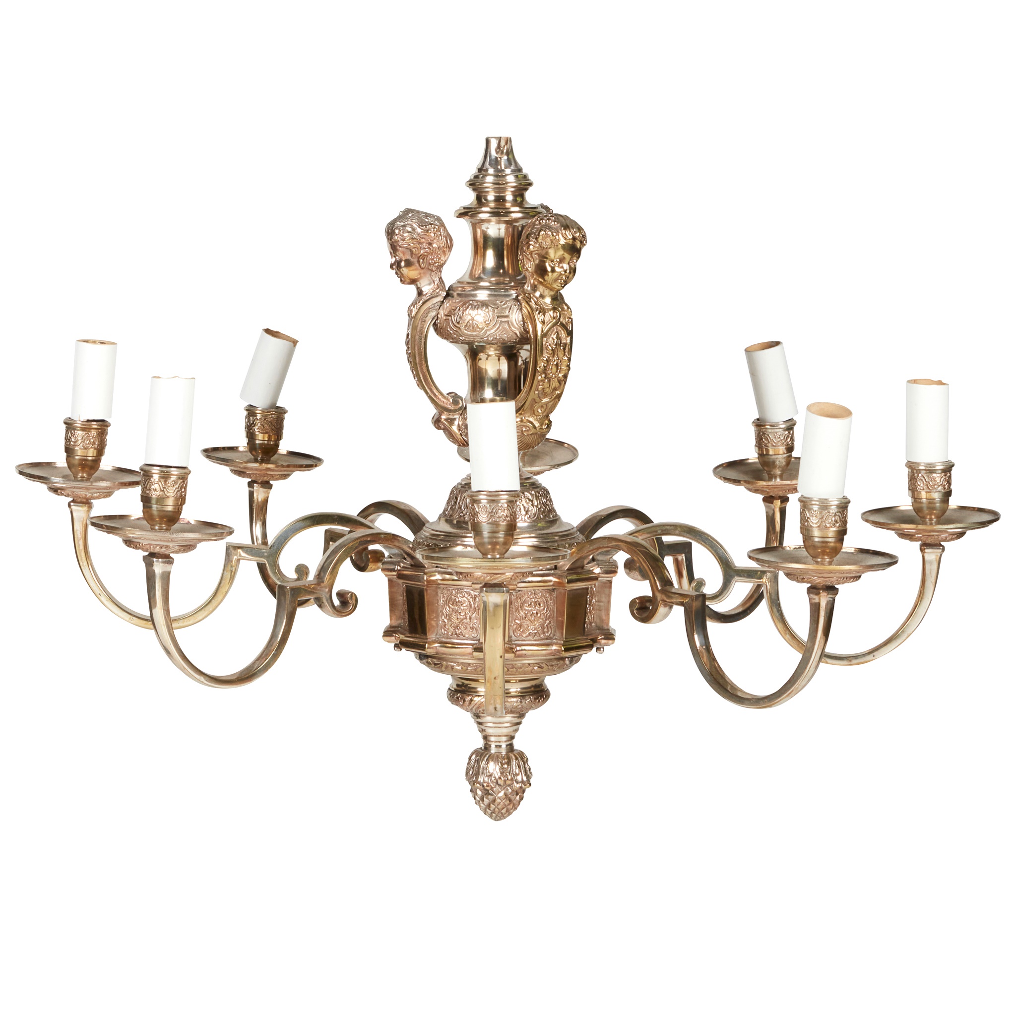 BAROQUE STYLE SILVERED EIGHT LIGHT CHANDELIER