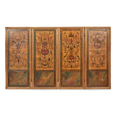 CONTINENTAL PAINTED AND GILT FOUR-FOLD SCREEN
