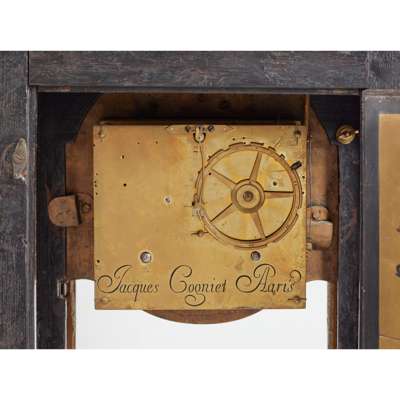 FRENCH RÉGENCE BRASS, TORTOISESHELL, AND IVORY BOULLE MARQUETRY BRACKET CLOCK, SIGNED JACQUES COGNIET, PARIS Y