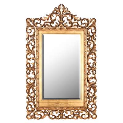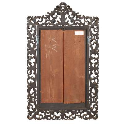 the rectangular mirror plate in a moulded inner frame enclosed by pierced and carved acanthus scrolls