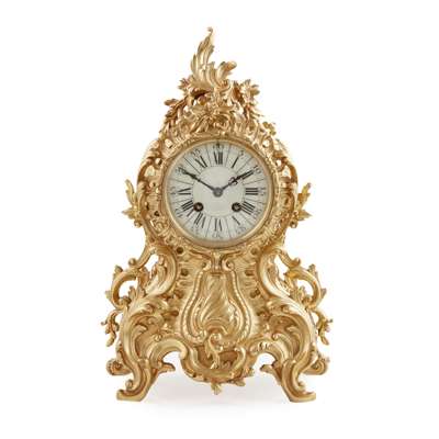FRENCH ROCOCO REVIVAL GILT METAL MANTEL CLOCK
