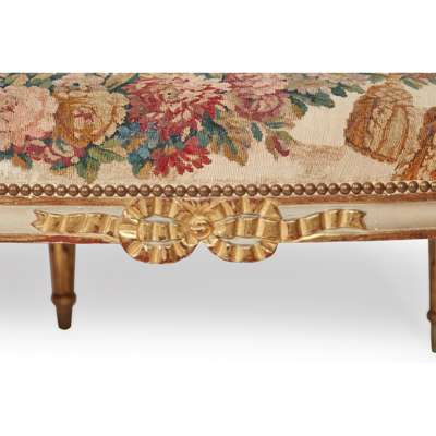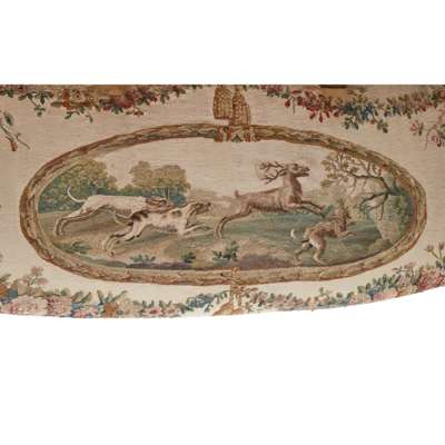 Note: The Château de Vaulserre, originally the seat of the de Clermont family, was considered one of the finest château of the Dauphiné, and later was owned by the Corbeau de Aint Franc family. The Aubusson covers mostly appear to be taken from Jean de la Fontaine's series of tales published from 1668-1694. Taken from various sources but relying heavily on the works of Aesop, Babrius, and Phaedrus, among others, as well as the Indian Bidrai, the tales often incorporated anthropomorphic animals in moralist predicaments, and were widely popular.