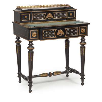 LOUIS PHILIPPE EBONISED, MOTHER-OF-PEARL, AND GILT METAL MOUNTED BONHEUR DU JOUR
