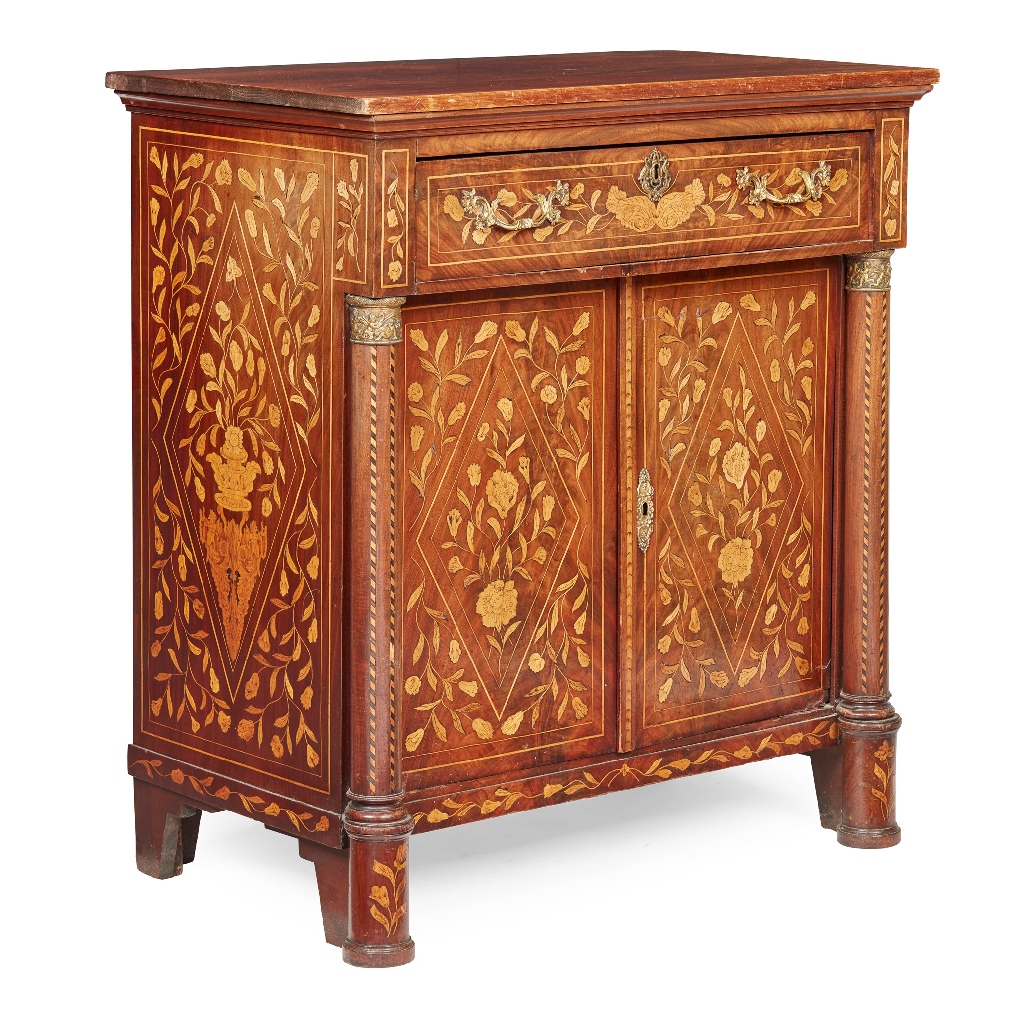 DUTCH MAHOGANY AND MARQUETRY SIDE CABINET